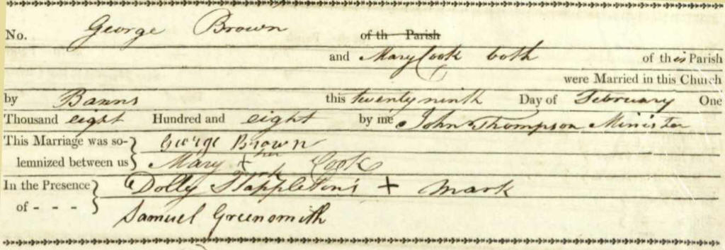 Mary Cooke first marriage to George Brown