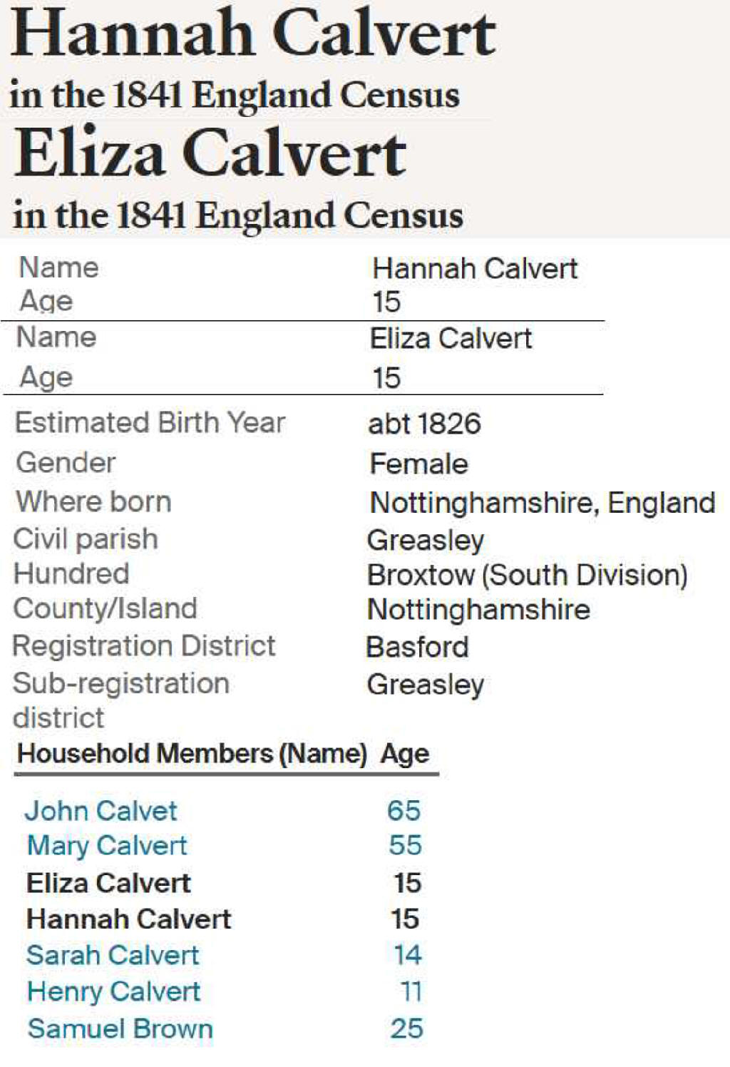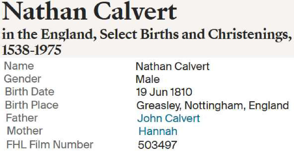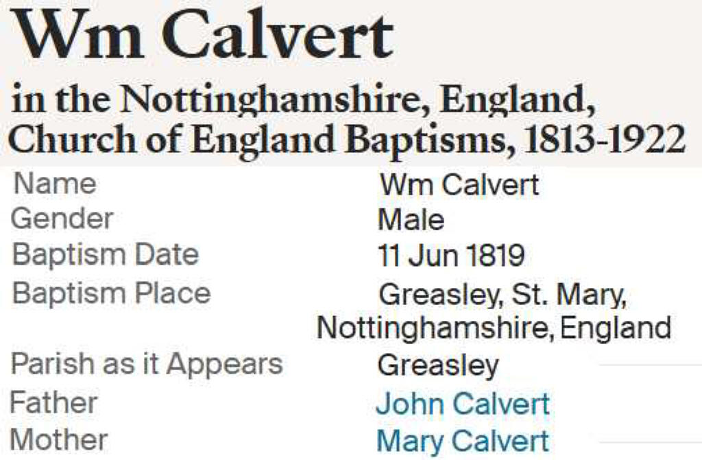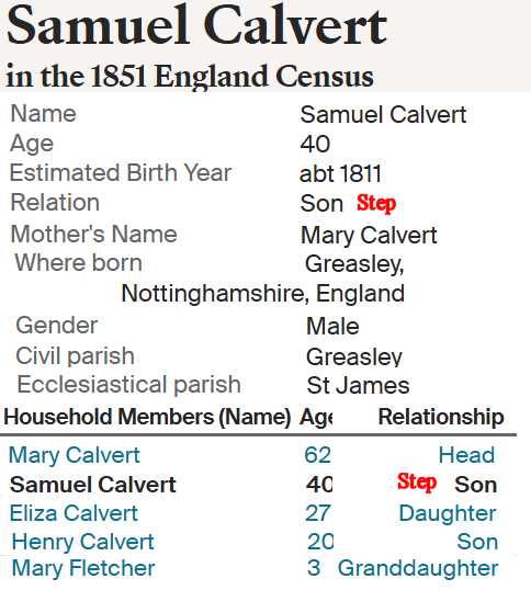 Samuel Calvert Birth from Census record![]() |