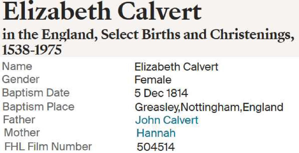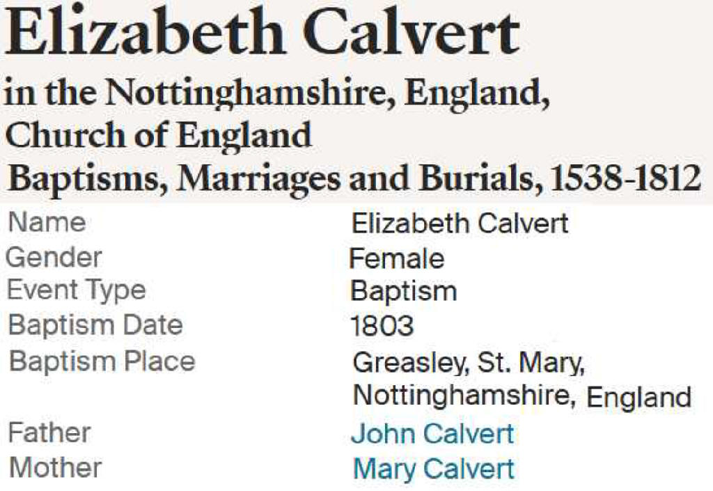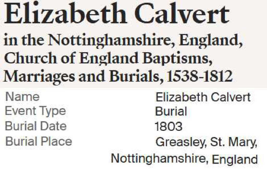 | Elizabeth Calvert | 5 Dec 1814 |