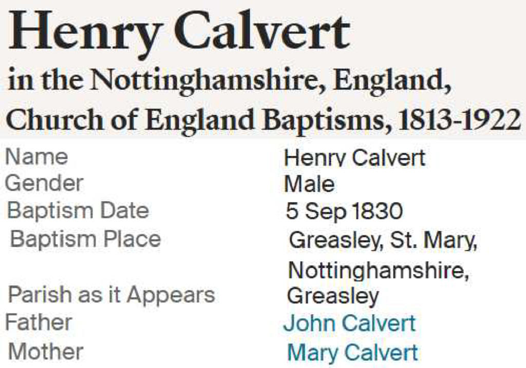 | Henry Calvert | 1830 | 1894 | Lucy Burton 1862 |