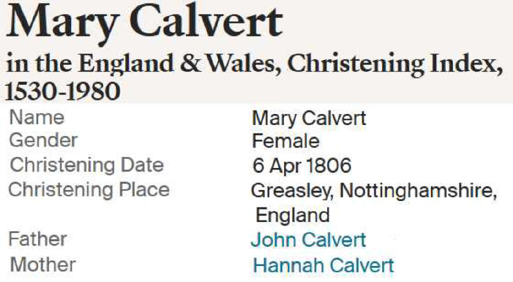 | Mary Calvert | 6 Apr 1806 | |||