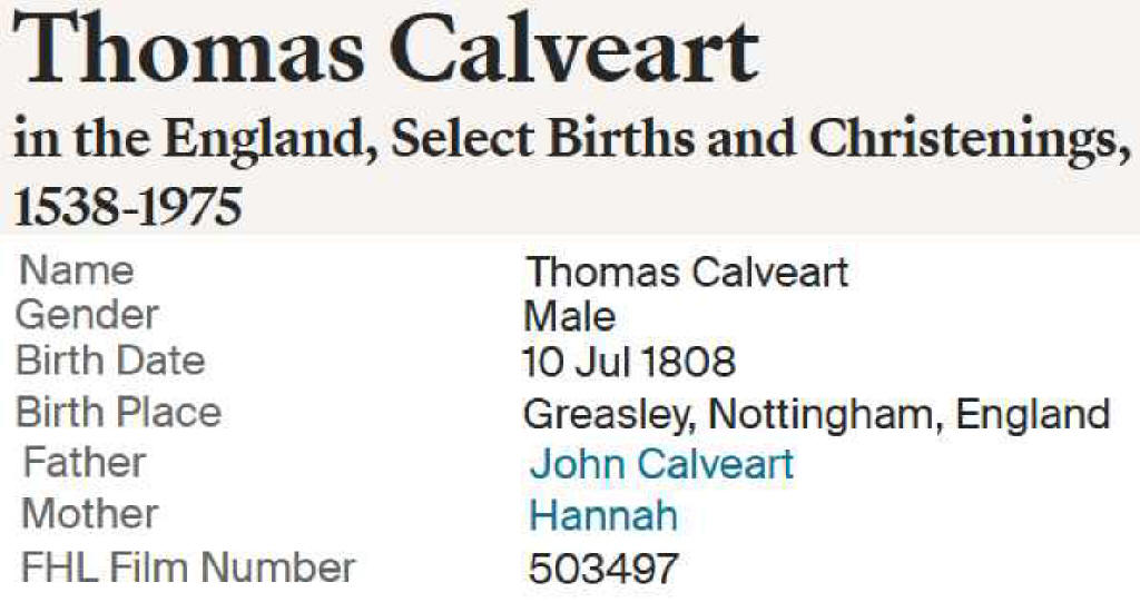 Possible husband of Thirza Calvert as shown in