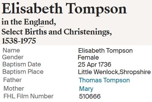 Generation Thomas Thompson Mary Gallear (Note: from other trees!) |