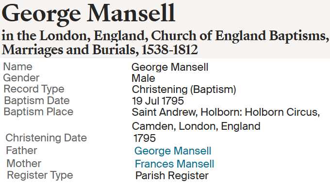 19 Jul 1795 Saint Andrew, Holborn, London, England |