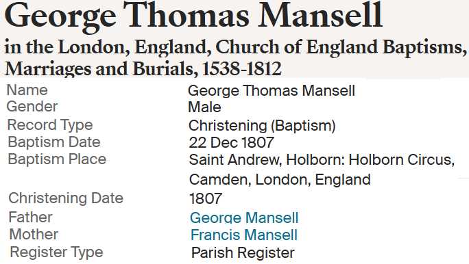 22 Dec 1807 Saint Andrew, Holborn, London, England |