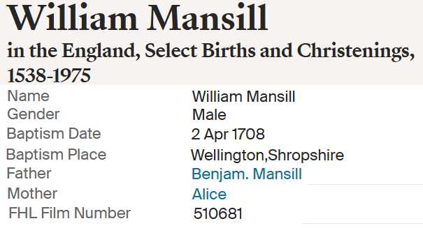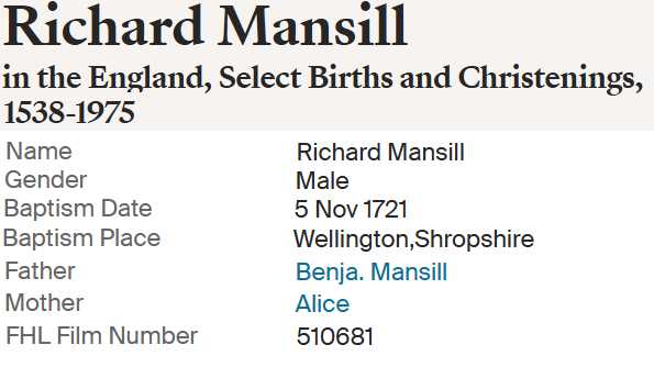 Marriage: ~2 Nov 1707 Shifnal, Shropshire, England |